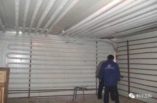 當霜層厚度>10㎜時,其傳熱效率下降30%左右以上,可見霜層對傳熱影響有如此之大。(本文來源:來源制冷百科微信公眾號。)經測定,當管壁內外測溫差為10℃ 時,庫溫在-18℃,排管工作一個月后,其傳熱系數K值大約只有原來數值的70%左右,尤其冷風機中的肋片管,當結有霜層時,不但熱阻增大,而且空氣的流動阻力亦增加,嚴重時其至無風送出。